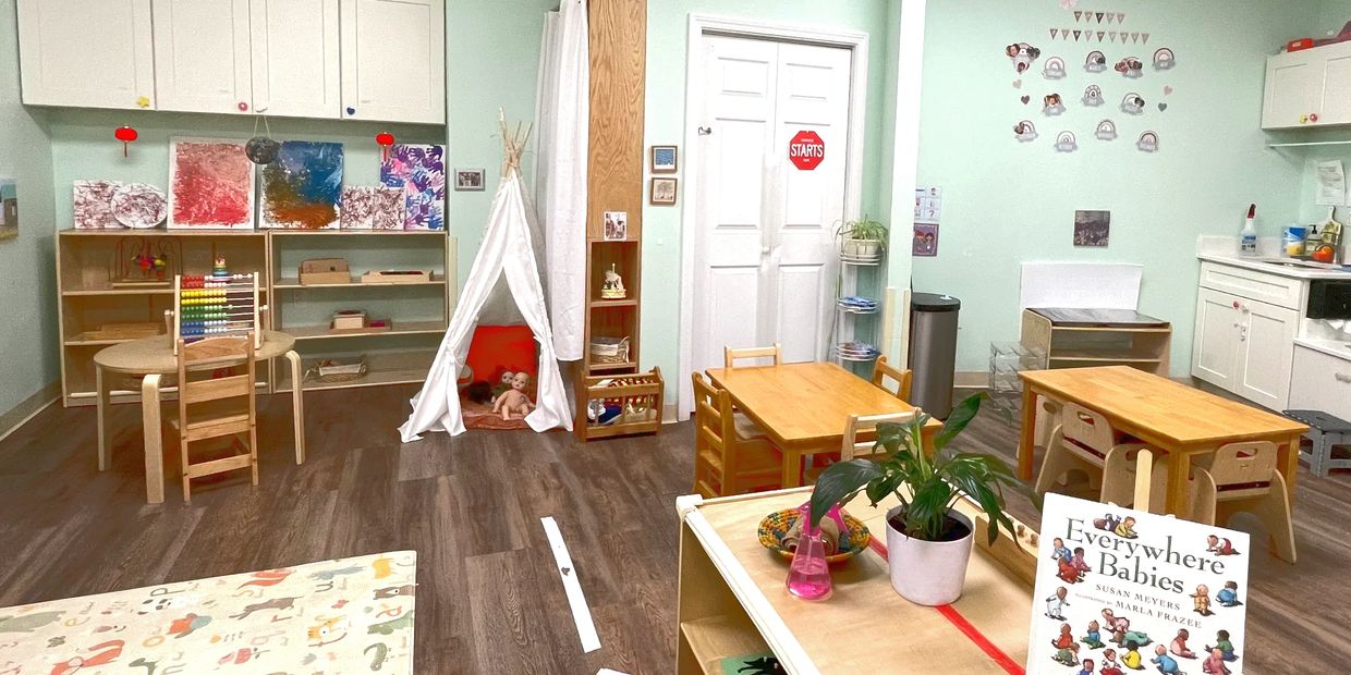 When your infant begins to roll, crawl, and toddle, their perspective of the world around them changes and expands. The mind continues to absorb in the toddler years meaning it’s so important to build curiosity and focus on these emerging interests and skills as customized by their teachers' observations. Since toddlers crave freedom, the environment is prepared to maximize child desires by fostering self-care through providing child-sized furniture and age-appropriate whenever-available learning materials. A vast number of daily activities, where children may opt to learn individually or in groups, help children gain a sense of confidence in their competence. Within this language-rich environment, the child is spoken to as an adult with compassion and respect and encouraged to explore picture books, and vocabulary cards, and participate in books read aloud to the child. Alongside basic language skills, problem-solving, visual discrimination, physical coordination, and concentration are woven into the daily routines with more focus in areas for children that have been observed to need more focus in a particular area.